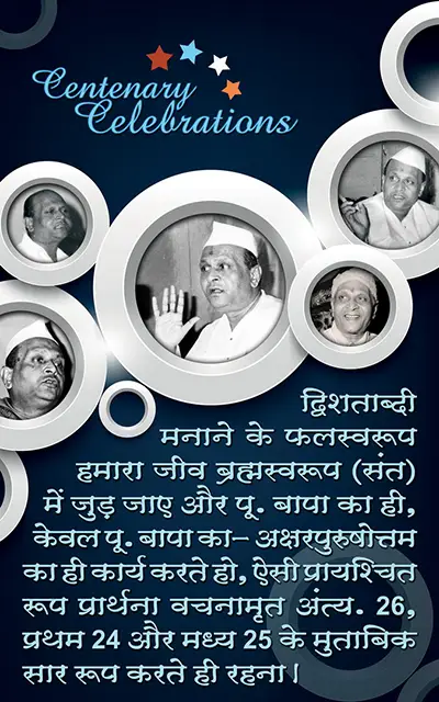 Revealing the secrets of Aksharpurushottam Upasana worldwide to guide countless souls to redemption, the founder, inspirer and mentor of Gunatit Samaj stayed in Mumbai and played a pivotal role in the formation of independent philanthropic organizations: