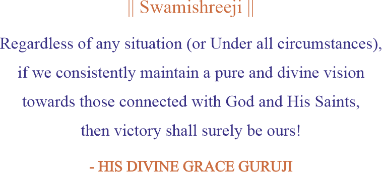 His selfless, evergreen efforts for the upliftment of multiple Haribhaktos, by way of silent, constant and continuous Bhajan, have brought prosperity and divinity in all our lives. P.P.Guruji's joyful charisma and God-radiant persona naturally make everyone attracted to his activities, which are full of unprecedented surprises and divine bliss.